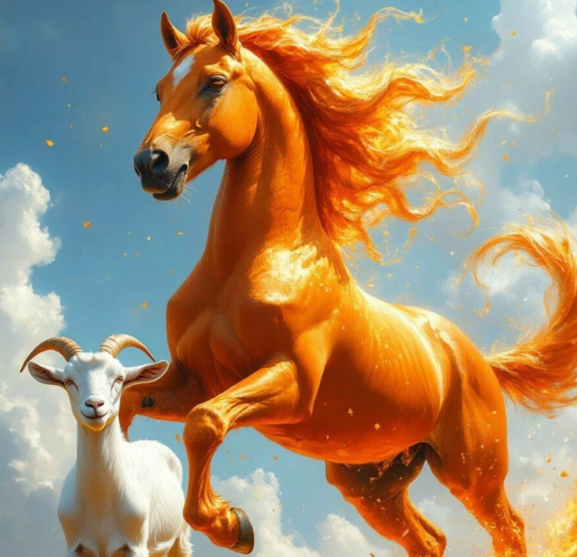 🐐 Коза — вызывает чувство любви у Князя года. А Князем года является Лошадь в 2026 году. Им хочется слиться в сладострастно поцелуе. 🐐🐎Лошадь и Коза — соседи по зодиакальному кругу, и их энергии близки: Лошадь приносит импульс, скорость и смелость, а Коза — мягкость, любовь к искусству, вкус и заботу. Лошадь получает тёплую, творческую опору Козы. Вместе они создают мощный поток вдохновения, любви и творчества.
